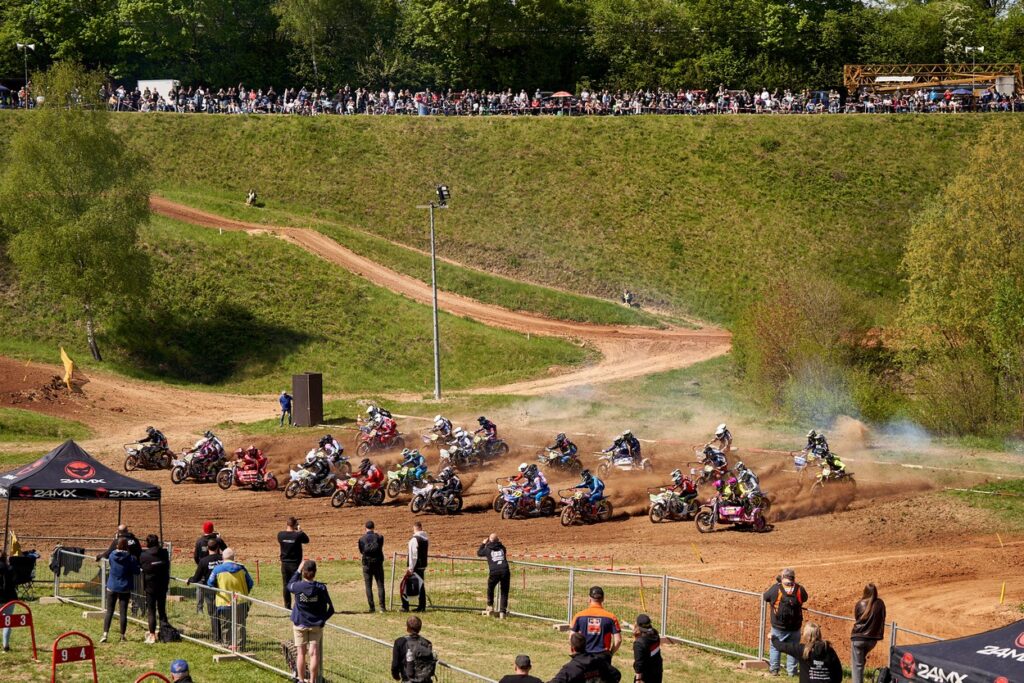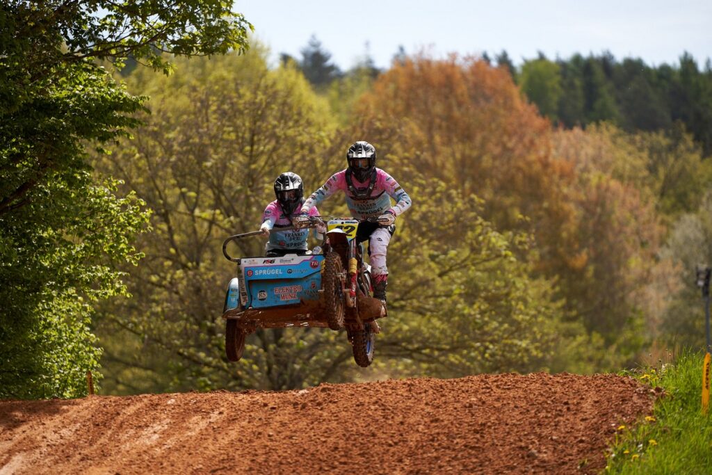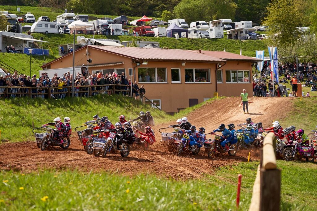 Auf drei Rädern gingen die Teams der Deutschen Seitenwagen Meisterschaft an den Start. Die Seitenwagen Klasse ist seit jeher der Zuschauermagnet des Motocross Sports und lockte auch dieses Jahr wieder zahlreiche Besucherinnen und Besucher an die Rennstrecke im Aufenauer Talkessel. Sowohl das freie Training als auch den ersten Wertungslauf sicherten sich Tim Trümmer aus Hürtgenwald mit Beifahrer Patrick Schneider vor Adrian Peter aus Marburg mit Julian Zimmermann. Der zweite Wertungslauf endete recht ähnlich, änderte jedoch nichts mehr an der Reihenfolge in der Gesamtwertung. Auf Rang drei fuhr der Niederländer Stephan Wijers mit Beifahrer Joel Hoffmann.